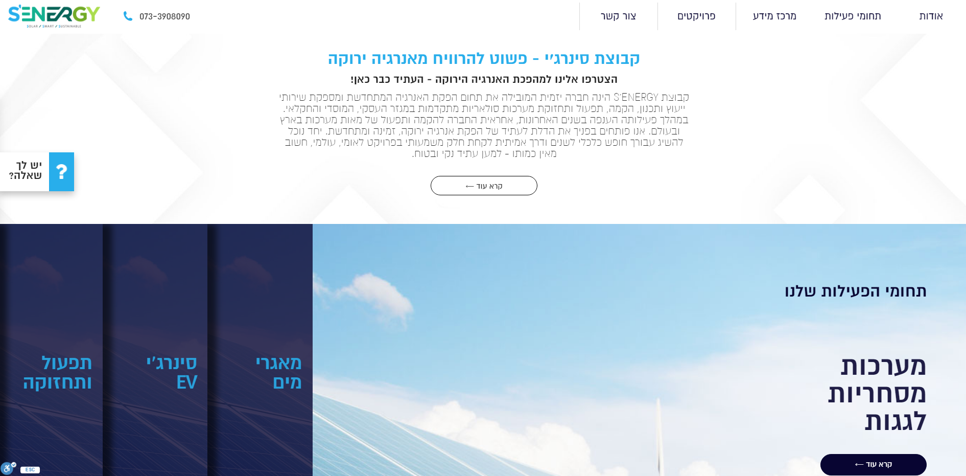 חברת S’ENERGY מובילה את תחום הפקת האנרגיה המתחדשת ומספקת שירותי ייעוץ ותכנון, הקמה, תפעול ותחזוקת מערכות סולאריות מתקדמות במגזר העסקי, המוסדי והחקלאי.